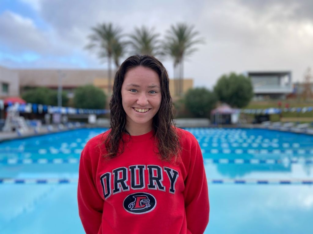 “I am thrilled to announce my commitment to Drury University! I am so proud to continue my academic and athletic career at a school with such a long legacy including National Champions, Olympians, and amazing, hard-working coaching staff. I am grateful to my family and my coaches who helped me arrive at this decision. Also, my parents are my coaches. Go Panthers!”