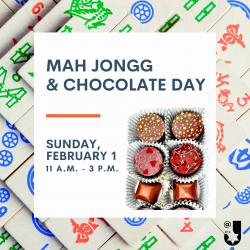 Join us for an unforgettable Mah Jongg event with guest speaker Dr. Diane Stein, local chocolate maker and educator. Enjoy chocolate stories, a bit of mischief; and nutty, fruity, tart, earthy flavors when you are treated to several sample chocolates that will delight you. Additionally, her chocolates and artisan chocolate covered caramels will be available throughout our event for purchase.